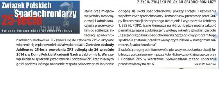 Po zawodach z okazji obchodzonego „Dnia Spadochroniarza” przez XXXIX Oddział ZPS w Przemyślu, w 100-tną rocznicę odzyskania Niepodległości odbył się piknik podczas którego uczestnicy wymieniali wspomnienia, a na pamiątkę tego wydarzenia otrzymali upominek okolicznościowy w postaci szklanki z wygrawerowanym logo ZPS - u z nazwą Oddziału.