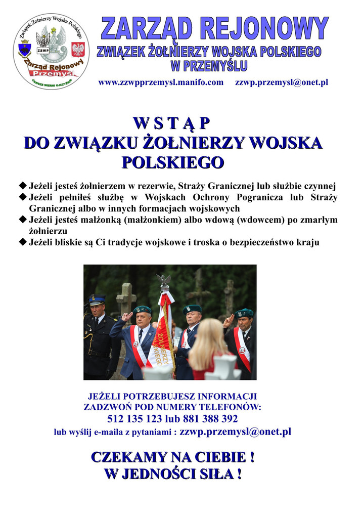 Związek Żołnierzy Wojska Polskiego jest dobrowolnym, demokratycznym oraz samorządnym stowarzyszeniem działającym na podstawie ustawy z dnia 7 kwietnia 1989 roku "Prawo o stowarzyszeniach". Związek kontynuuje chlubny dorobek i tradycje Wojska Polskiego.